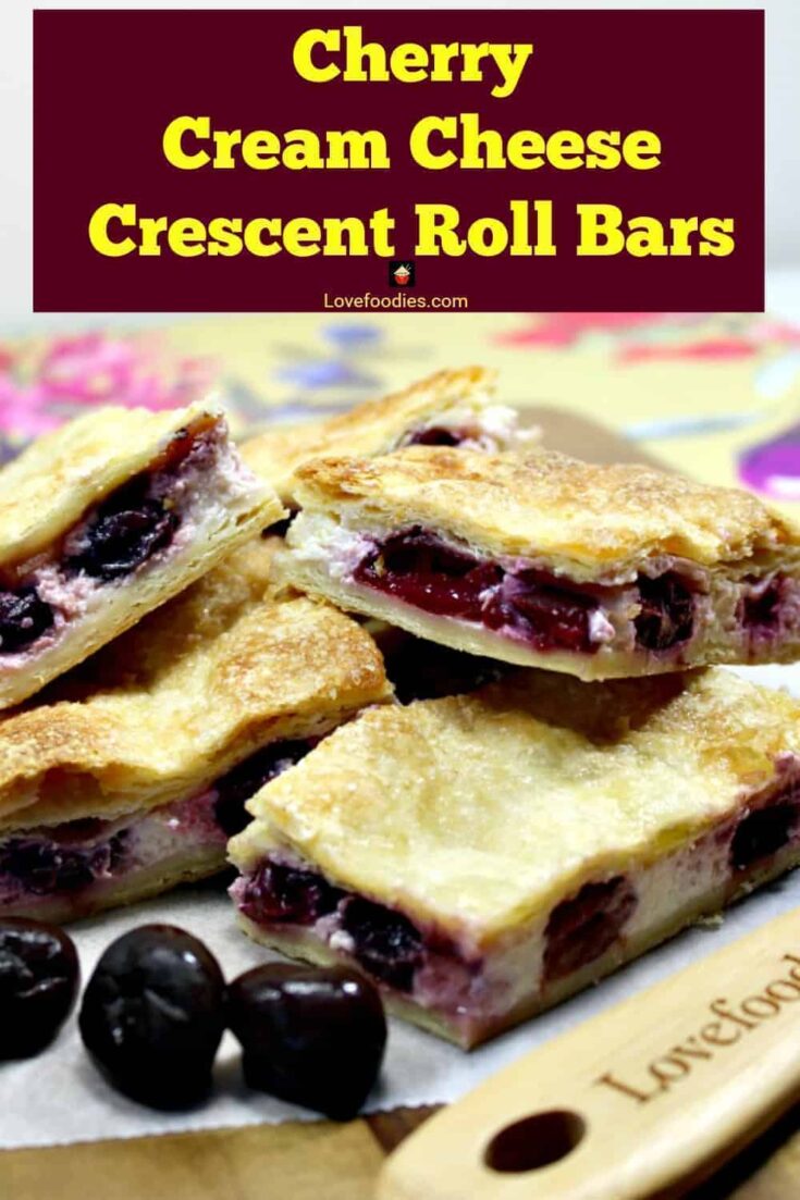 Cherry Crescent Roll Cheesecake Bars. A.K.A Sopapilla Cheesecake Bars. An incredibly quick, easy recipe with cream cheese and cherries sandwiched between layers of flaky buttery golden pastry. Popular cream cheese crescent roll dessert