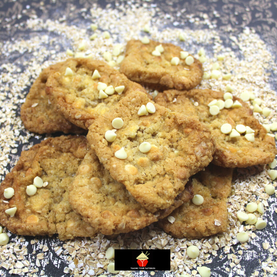 Chewy White Chocolate Oatmeal Cookies.
